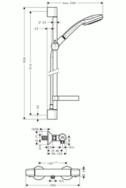 Hansgrohe Croma 100 Brausesystem Aufputz Multi Ecostat Comfort Thermostat U. Brausestange 0,90m 2708
