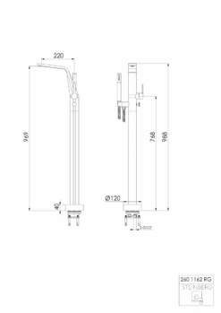 Steinberg Serie 260 Freistehende Wanne/Brause – Armatur, Mit Umsteller, Handbrause, Rose Gold