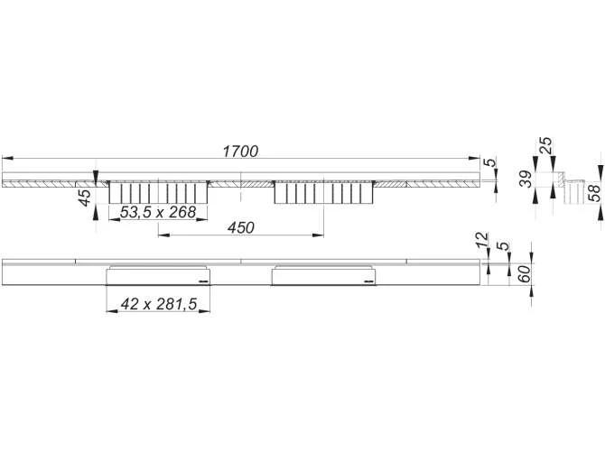 mm, hochglanzpoliert, 25 x 60 x 1700