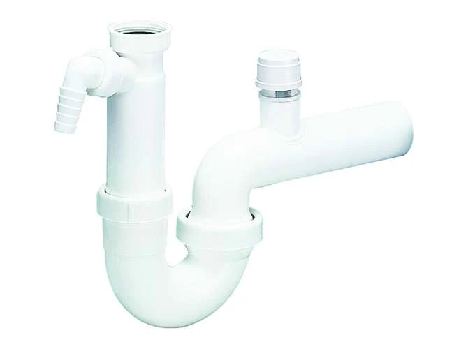 DALLMER Röhren-Siphon 100/1 SLR nach DIN EN 411 Anschlüsse: 1 1/2″ x DN 50 Siphon durchgehend DN 50, mit verstellbarem Kugelgelenk-Ablaufbogen, Waschgeräte-Anschluss und getrennter Kammer für das Abwasser des Waschgerätes dadurch „superleise“, mit Belüftungs- ventil.