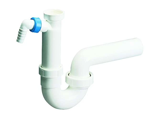 DALLMER Röhren-Siphon 100/1 SLRS nach DIN EN 411 Anschlüsse: 1 1/2″ x DN 50 Siphon durchgehend DN 50, mit verstellbarem Kugelgelenk-Ablaufbogen, Waschgeräte-Anschluss und getrennter Kammer für das Abwasser des Waschgerätes dadurch „superleise“, Mit Rückfluss- sperre im Waschgeräteanschluss. Material: Polypropylen, hochschlagfest