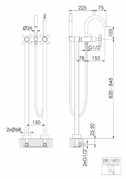 Steinberg Serie 260 Freistehende Wanne/Brause – Armatur, Mit Umsteller, Handbrause, Rose Gold