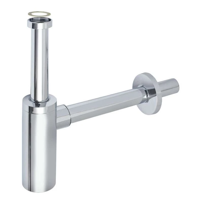 WT-Ablauf mit Tauchrohr Ventilrosette Abgang horizontal d32 glanzverchromt