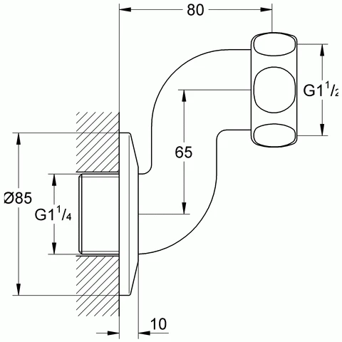 GROHE S-Anschluss 12413 Verstellbarkeit 65mm 1 1/2“x5/4“ Chrom