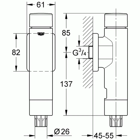 GROHE WC-Druckspüler Rondo A.S. 37347 DN 20 Chrom
