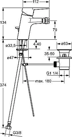 - Ablaufgarnitur (Metall) und Zugbetätigung