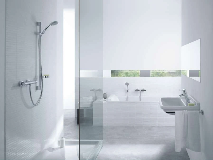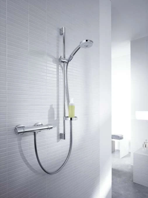 - Besteht aus: Handbrause, Brausethermostat, Brausestange, Schieber, Seifenschale, Brauseschlauch