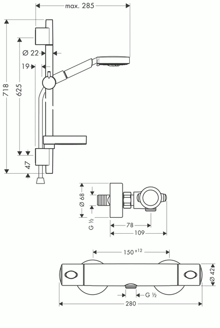 Hansa HANSALIVING Fertigmontageset Mit Funktionseinheit Wannen-Thermostat-Batterie Chrom, 81143572