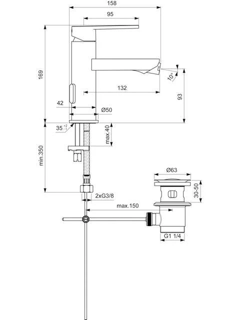 - Gesamte Ausladung (Ausld.xH): 158×169 mm