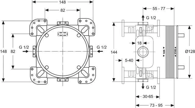 - Spülblock. Vorstehende Anschlüsse G1/2.