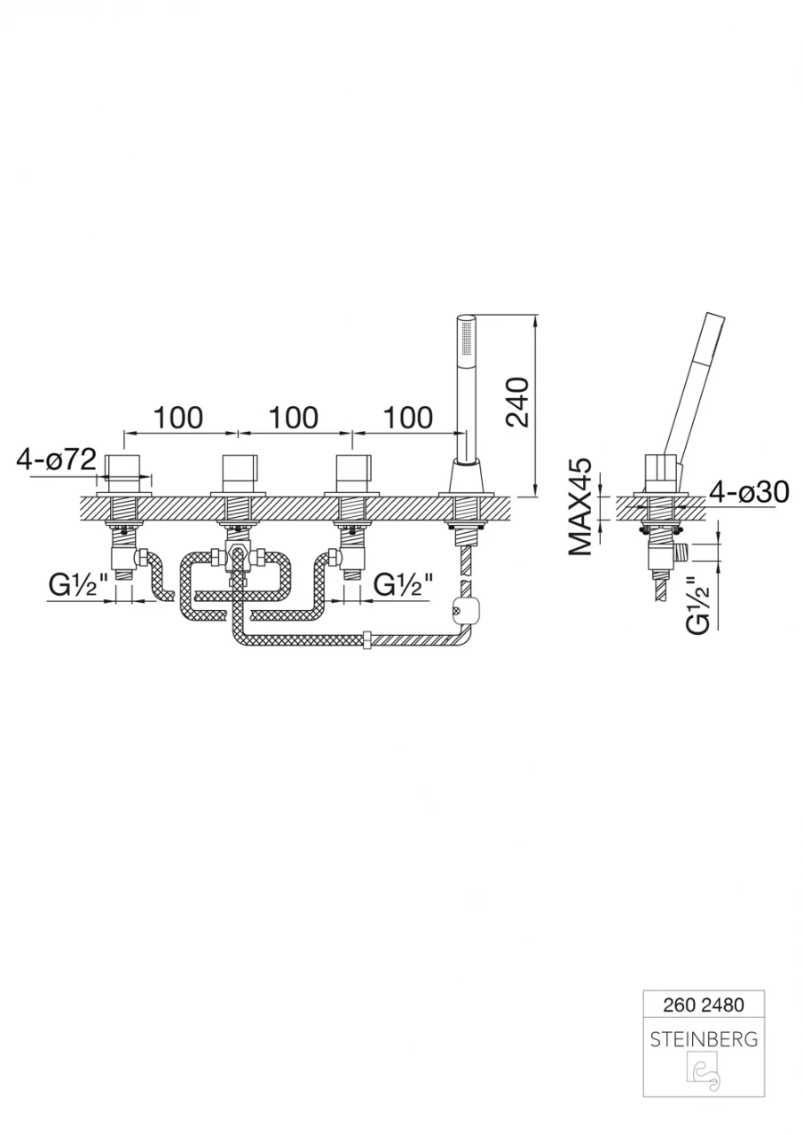 Steinberg 4-Loch Wanne/Brause-Standarmatur, Chrom