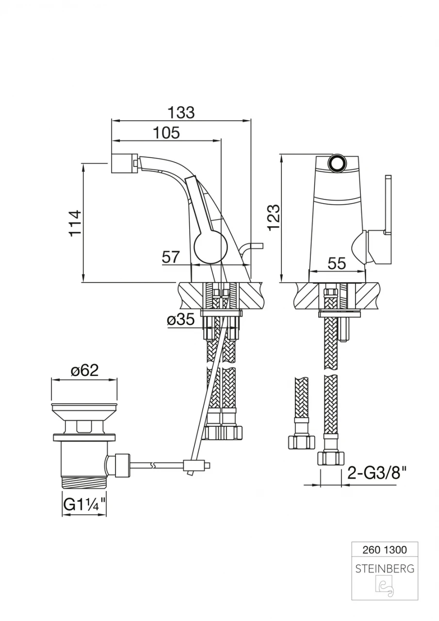 Steinberg Bidet-EHM-Batterie M. Ablaufgarnitur, Chrom