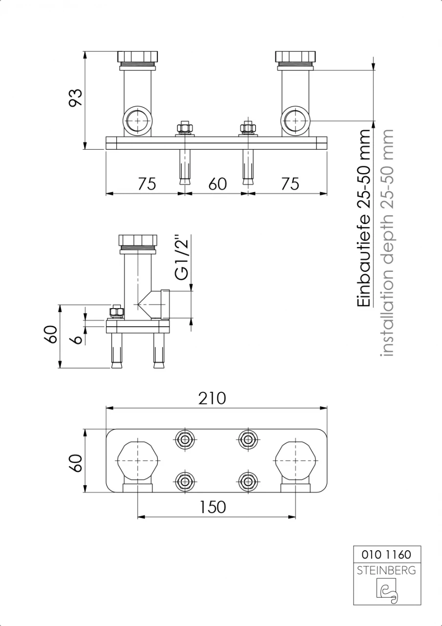 Steinberg Serie 120 Fertigmontageset Für Wanne/Brause-Einhebelmischbatterie, Chrom 1202243