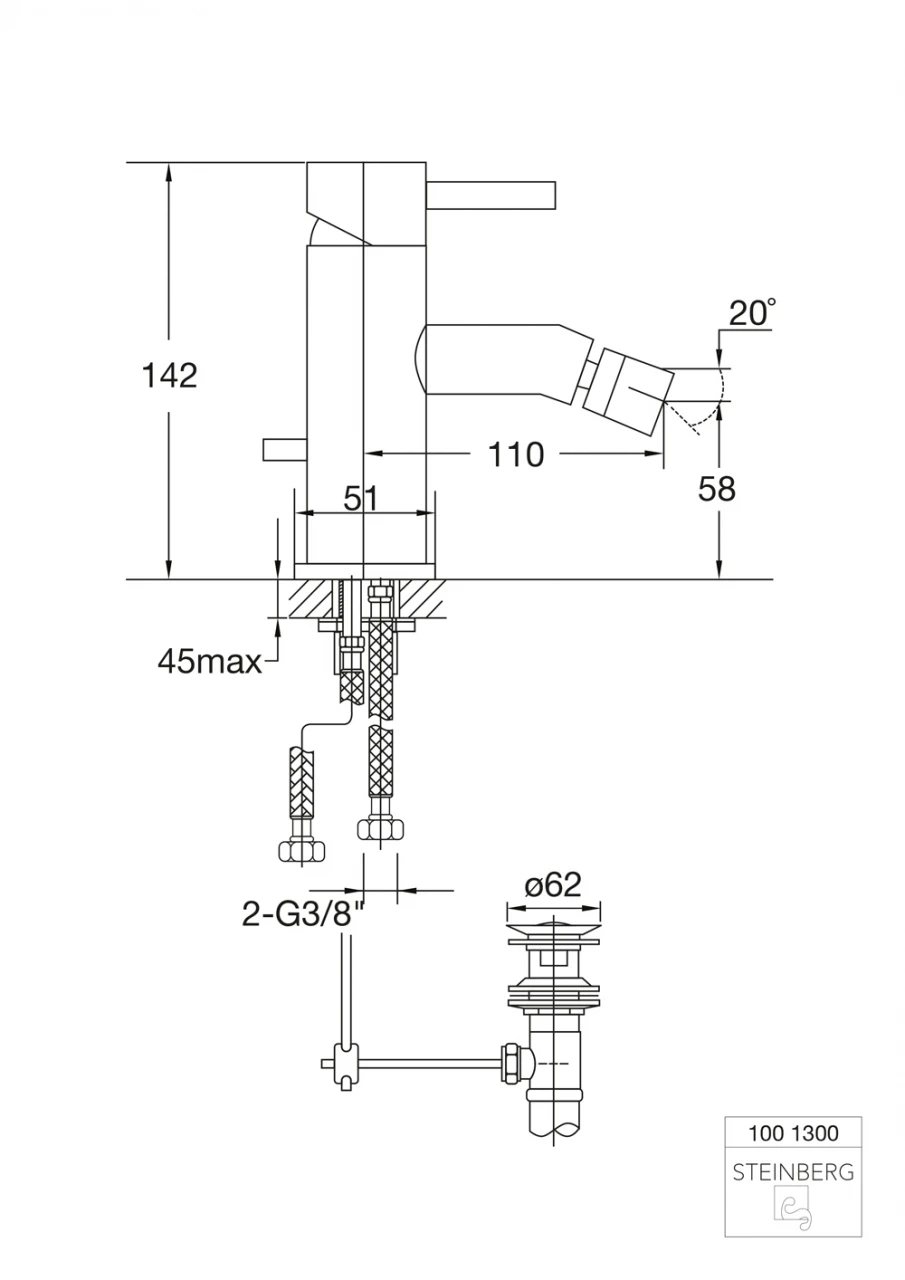 Steinberg Serie 100 Bidet Einhebelmischer 1001300, Chrom