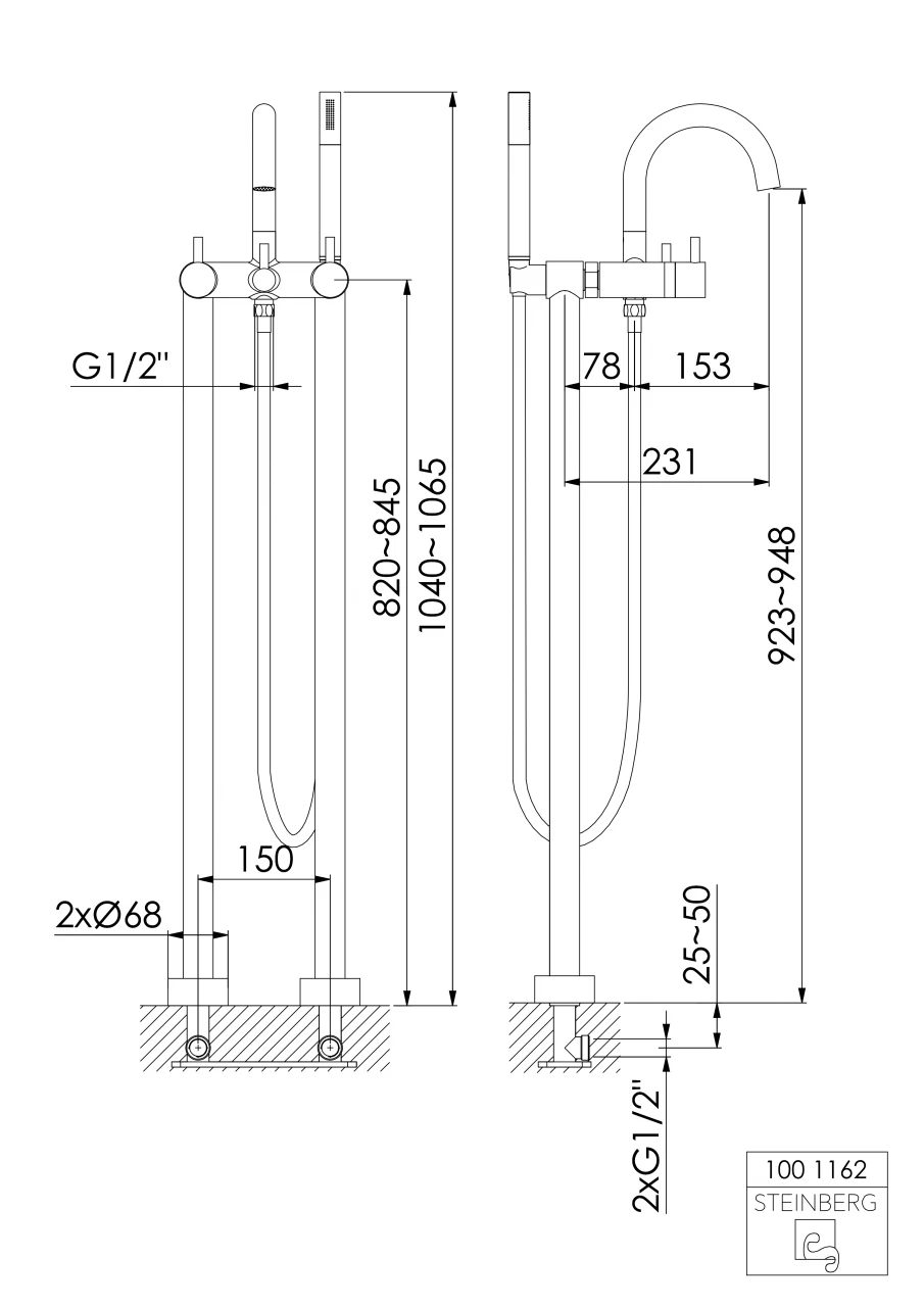 Steinberg Serie 100 Freistehende Wanne / Brause-Armatur 1001162, Chrom