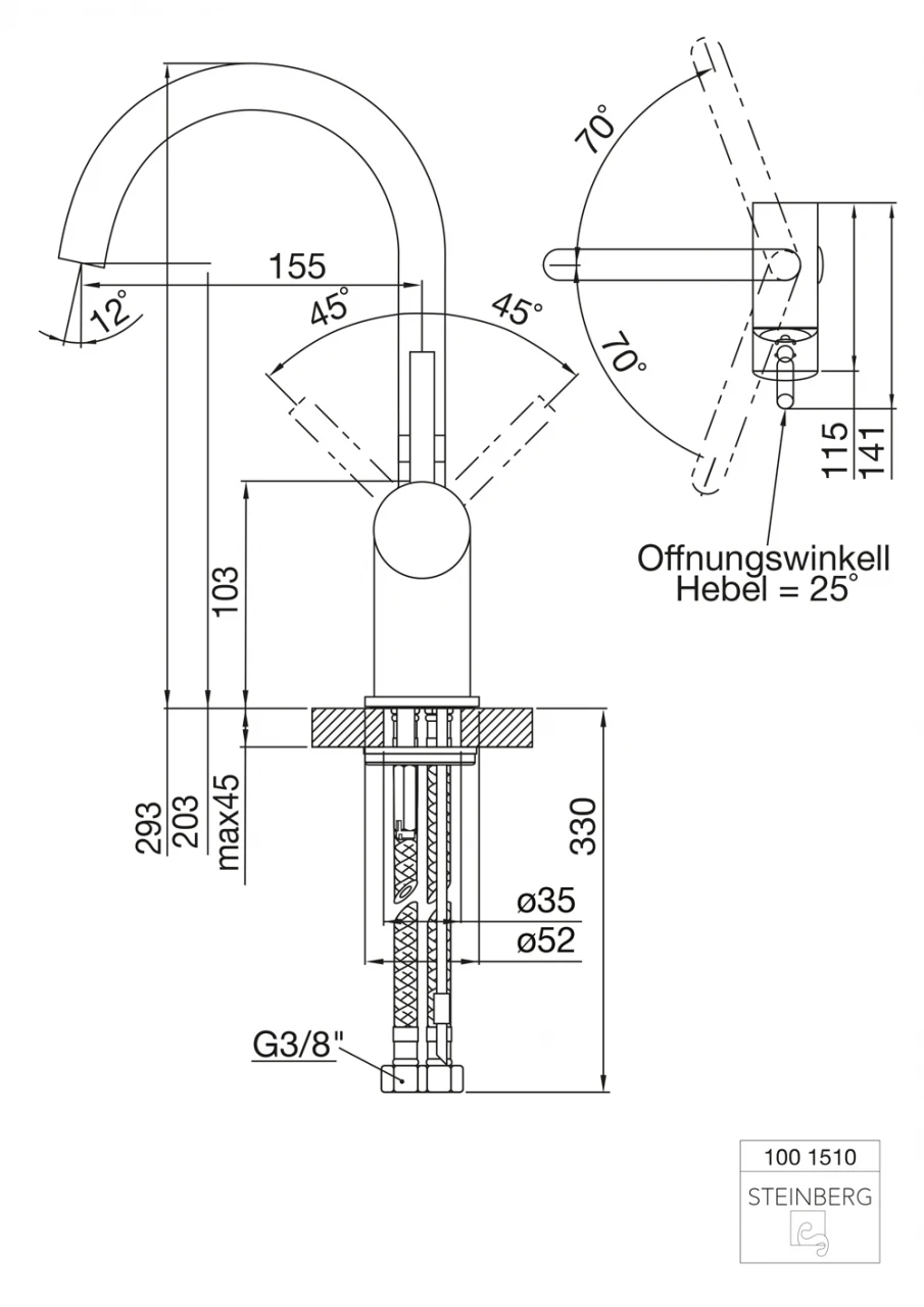 Steinberg Serie 100 Waschtisch-EHM-Batterie ohne Ablaufgarnitur, chrom