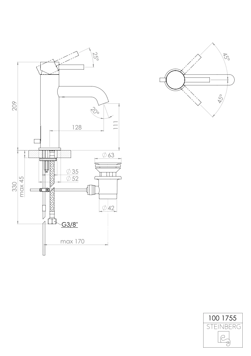 Steinberg Serie 100 Waschtisch-Einhebelmischbatterie Mit Ablaufgarnitur 1001755 Chrom