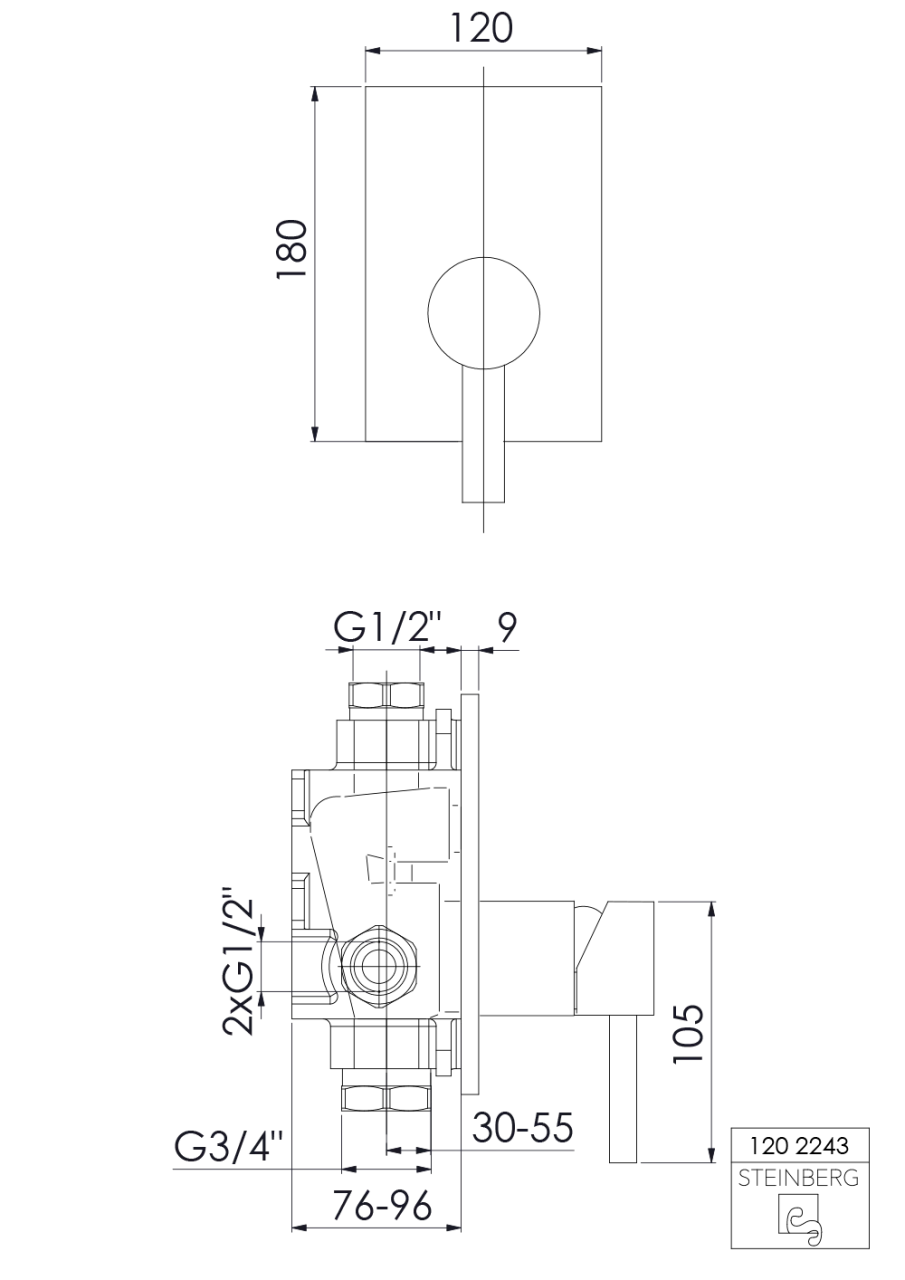 Steinberg Serie 120 Fertigmontageset für Wanne/Brause-Einhebelmischbatterie, chrom