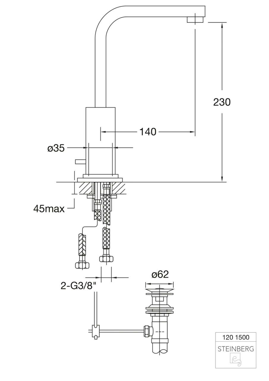 Steinberg Serie 120 Waschtisch-Einhebelmischbatterie Mit Ablaufgarnitur, 1201500 Chrom