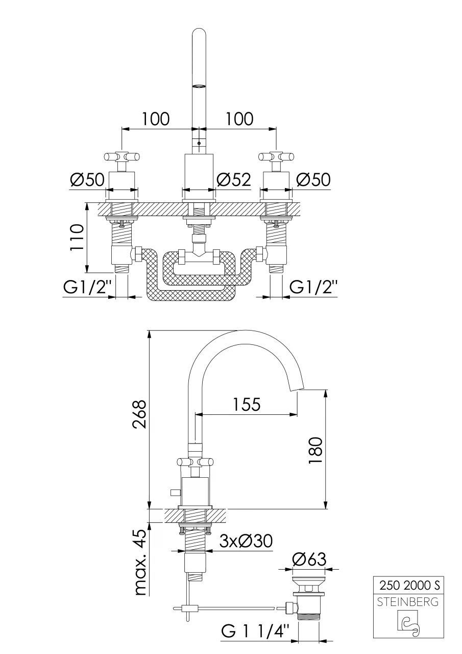Steinberg Serie 250 3-Loch-Waschtisch-Armatur M. Ablaufgarn., Matt Black