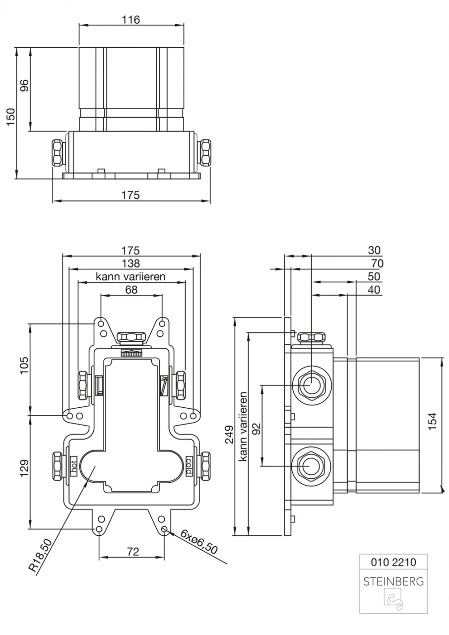 Unterputz Einbaukörper für alle Steinberg-Fertigmontagesets (Unterputz-Brause-Einhebelmischbatterien mit 3-Wege-Umsteller)