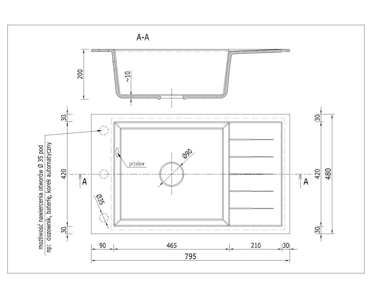 * vorgestanzte Löscher für Armatur und Ablaufgarnitur
